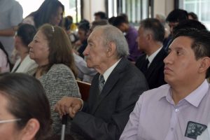 隨後,大家齊心和一地奉行了座拜與手舞。結束之後,所長渡邊先生致詞並表示:「墨西哥的信仰之道能延續至今,多虧了先賢們將自己的事情暫且放在一旁,並為了在墨西哥社會弘揚康樂生活的教理以熱情付諸行動。在此為這件事致上深切感謝,今後也將不斷地致力於使這間出張所成為教友們互相提升心靈層次的場所」。