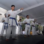 祭典後,在神殿前特設的帳篷會場中舉行了祝賀宴會。於舞台上陸續表演了婦人會的民族舞蹈、女子青年的手掌舞、青年會的空手表演,以及日語教室的合唱等 ,在洋溢著和樂氛圍的會場中,參加者一同彼此分享了這份喜悅。