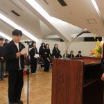 Après l’allocution du directeur, Takeo Uemura, des félicitations ont été adressées par Masanao Nakayama, sous-directeur de la Direction des Missions Étrangères, puis par Motoyosi Uwasu, président de l’assemblée des responsables du suivi des étudiants au sein des églises-filiales. Enfin, Lee Inhan, venu de Corée du Sud, a pris la parole au nom de tous les nouveaux étudiants pour exprimer son espérance et sa détermination face à cette nouvelle étape.