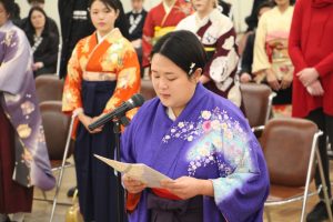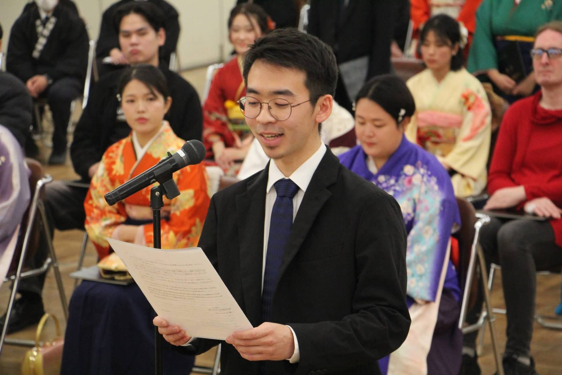 교장 훈사에 이어, 나카다 표통령은 축사에서 여기서 배운 것과 경험한 것을 크게 살려 앞으로도 용재로서 힘차게 활약해 주기를 바란다고 언급했다.