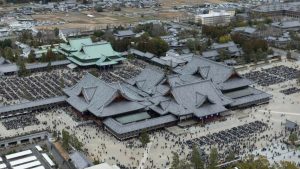 No dia da celebração, uma forte onda de frio atingiu o arquipélago japonês alguns dias antes, causando interrupções no trânsito em todo o país, especialmente na região de Kinki, forçando muitos seguidores que regressariam a permanecerem em suas localidades. Apesar disso, aproximadamente 120.000 yoboku e seguidores regressaram a Oyassato de todo o Japão e do mundo para a celebração. Os seguidores lotaram os 8.500 bancos espalhadas pela área sagrada, incluindo os quatro lados do Recinto de Reverência.