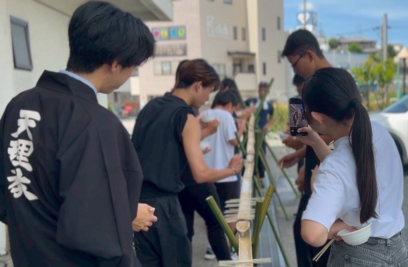 式典後は、会議室で昼食。また、班対抗のレクリエーションを交えた流しそうめん大会とデザートを楽しんだ。