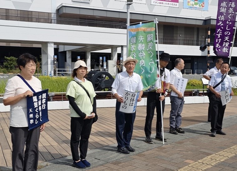 当日は、教会から神名流しをしながらイオンモールいわき小名浜へ移動し、路傍講演とリーフレット配布を行った。
