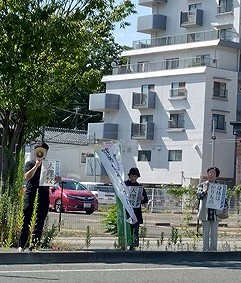 田村支部は9月30日、三春町で実動。5人が参加し、同町内でリーフレット配布を行った。