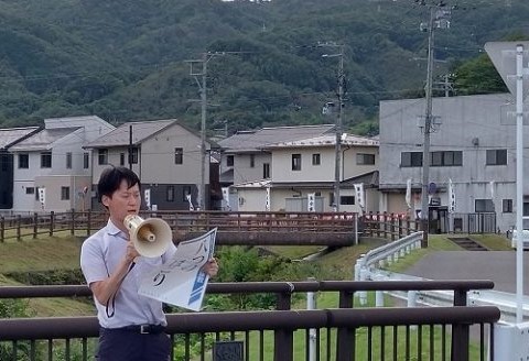 29日の渡利地区には2人、30日の蓬莱団地には3人が参加。いずれも、路傍講演とリーフレット配布、戸別訪問を行った。