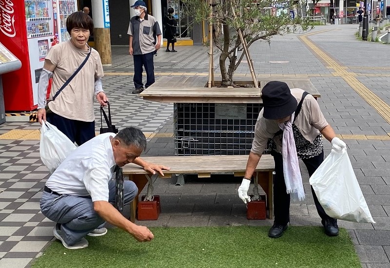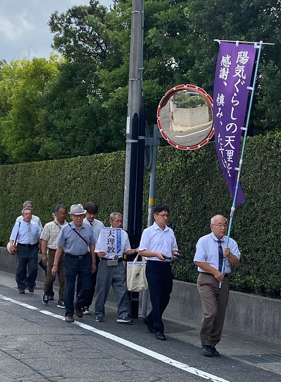 東知多支部は9月28日、半田市の半田分教会を拠点に15人が参加。同教会から名鉄知多半田駅まで往復で神名流しとごみ拾い、駅前での路傍講演を行った。