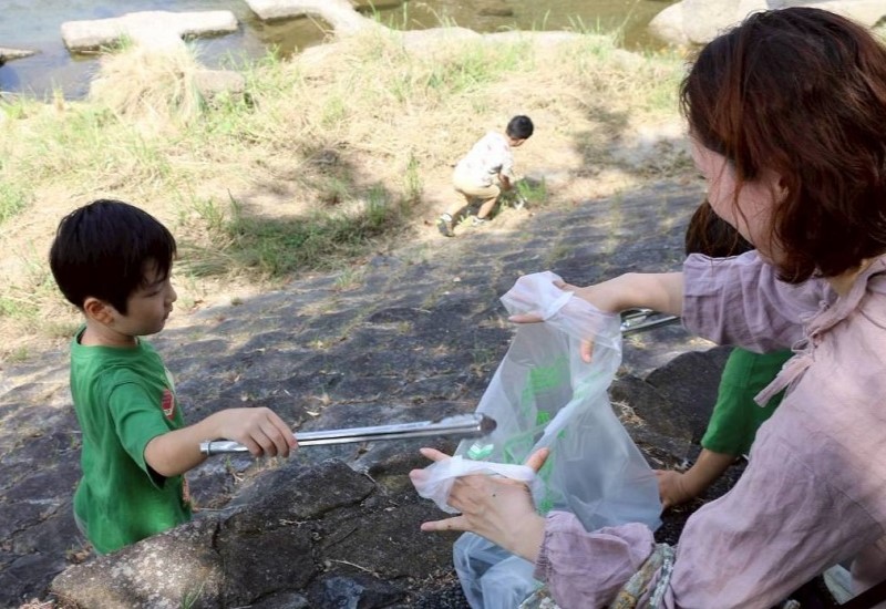 28日は四条大橋周辺で、路傍講演、にをいがけリーフレット入りティッシュの配布、清掃ひのきしんを行った。日曜日ということもあり、三世代の家族ぐるみで参加した教会が3教会あり、参加した少年会員が路傍講演に立つ姿も見られた。