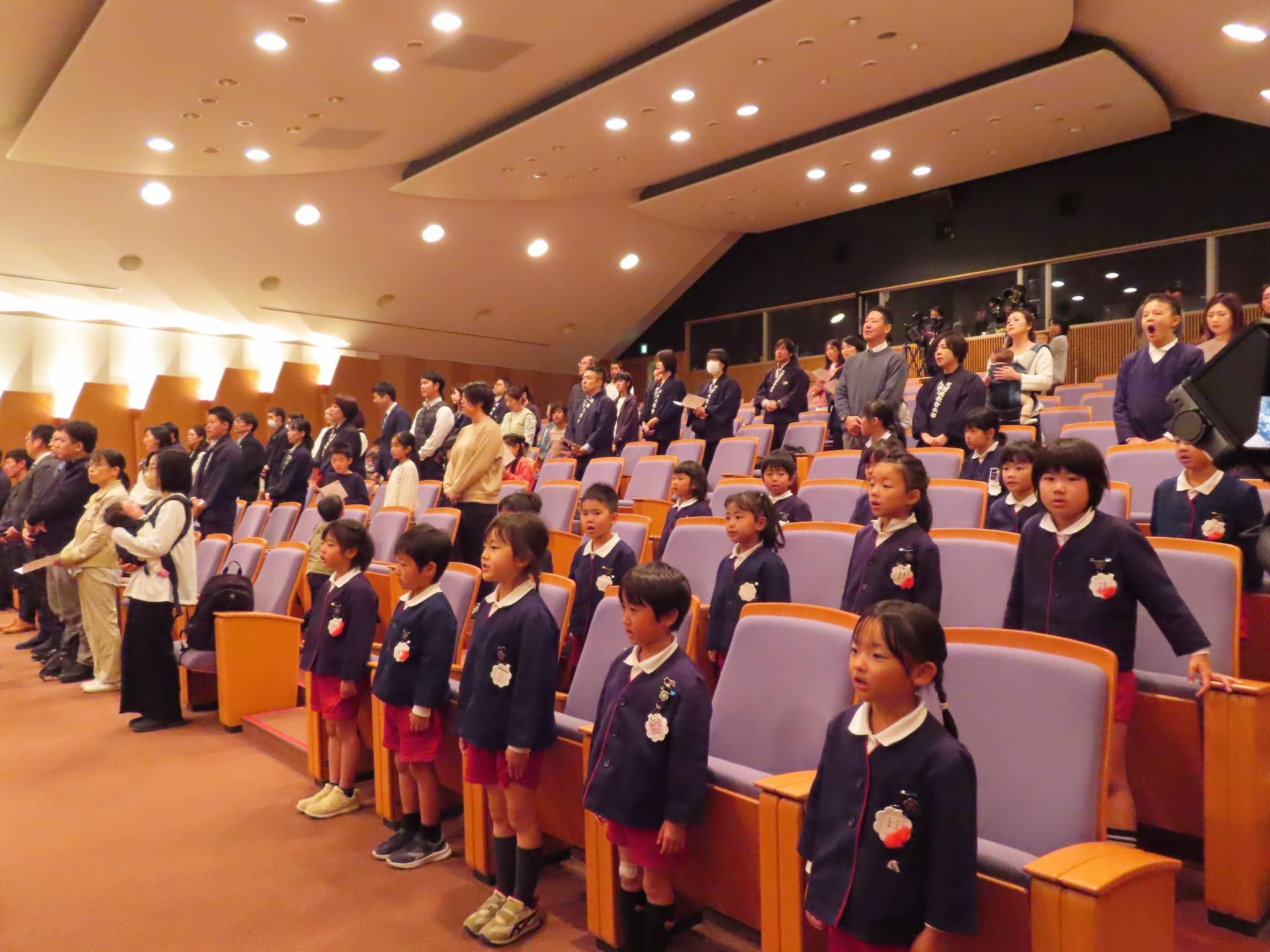 式典後、学年ごとに歌やダンスを笑顔いっぱいで披露しました。