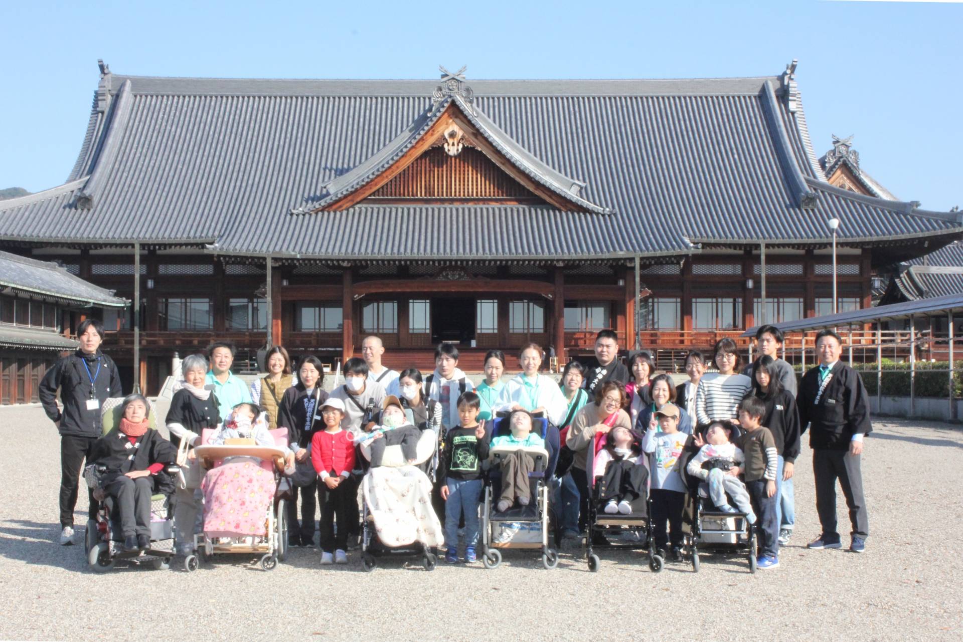 この団参は、重度の障がいがあるお子さんたちは夏の「こどもおぢばがえり」に参加しにくいことから、過ごしやすい秋に企画されたのが始まり。その後、医療的ケア児や肢体不自由児とそのご家族が、交流を深めながら信仰を分かち合うことを目的に、本部准員の梶本満男さんと妻のたけのさんを中心に続けられています。