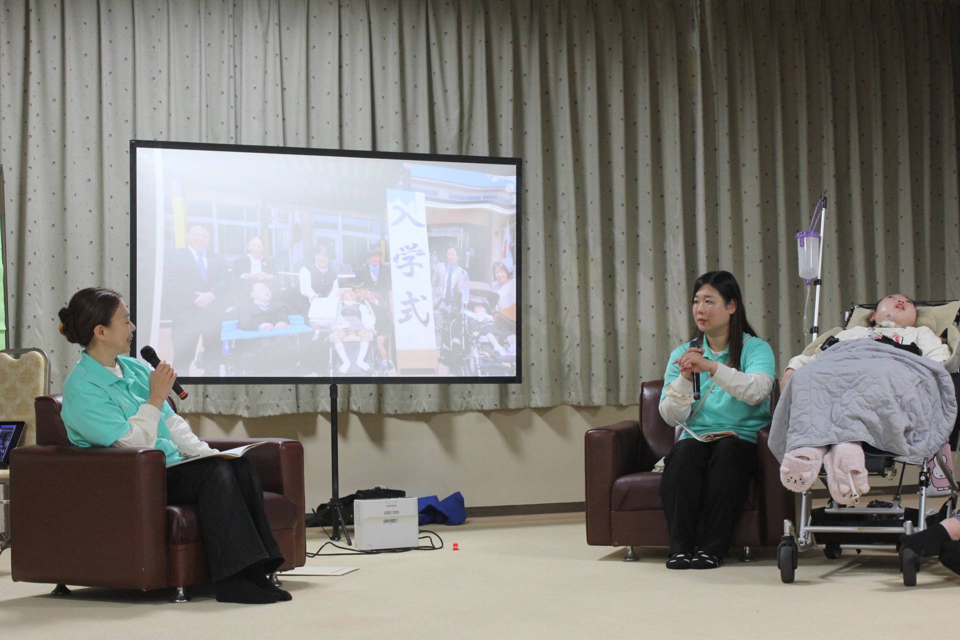 2日目には、「生まれてきてくれてありがとう」をテーマにしたトークショーが行われ、重度の障がいを持つ娘さんを育てる母親がその歩みを振り返り、子育ての悩みや工夫を参加者と分かち合いました。