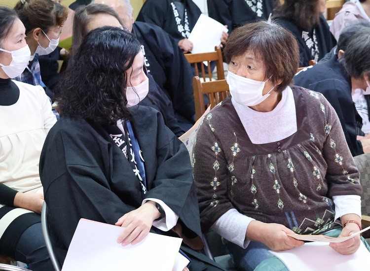 会場別プログラムは、廣岡文衛・美唄分教会長が「おつとめの素晴らしさ」の題で講話。廣岡氏は、自身の体験からおつとめへの理解が深まり、おつとめを勤めることが本当に有り難く素晴らしいと、分かりやすく、熱心に話した。参加者も、深くうなずきながら真剣なまなざしで講師の話を聞いていた。