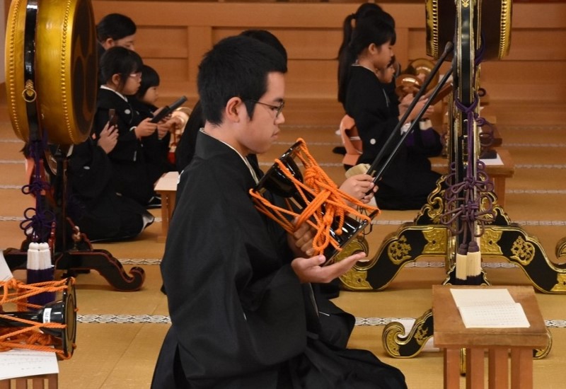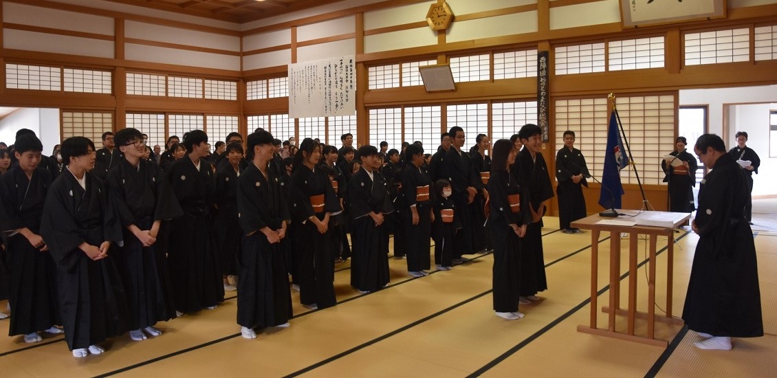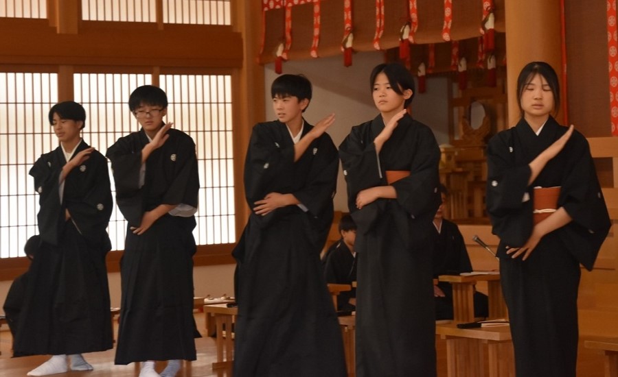 式典では、後藤団長が中山善司・少年会長の告辞を代読。続いて、永尾大和〈ともかず〉・育成会長がお祝いの言葉を述べた後、中学3年生の少年会員に記念品を手渡した。その後、少年会員の代表が「真心のおそなえ」の目録を贈呈し、今年の同団の活動ビデオを上映。全員で少年会員の「ちかい」を述べ、『少年会の歌』を斉唱した。