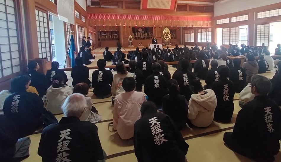 岡﨑育成会長は「教祖からお教えいただいたおつとめは、陽気ぐらしに向けて人だすけのために勤め、また、自分自身がたすかり、幸せになるために勤める」として、「皆さんの友達で病気や不登校で苦しんでいる人がいたら、友達のためにたすかりを求めて、一生懸命おつとめを勤めてもらいたい」と述べた。
