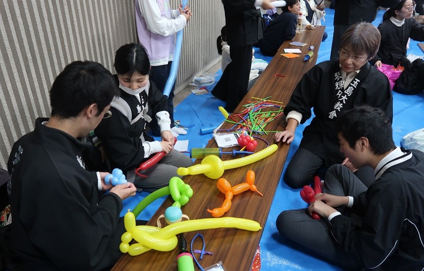 午後は「道の子バラエティー」として、講堂や中庭に設けられたゲームコーナーやクラフト、なぞとき、カラオケ、鼓笛隊の演奏などで楽しんだ。