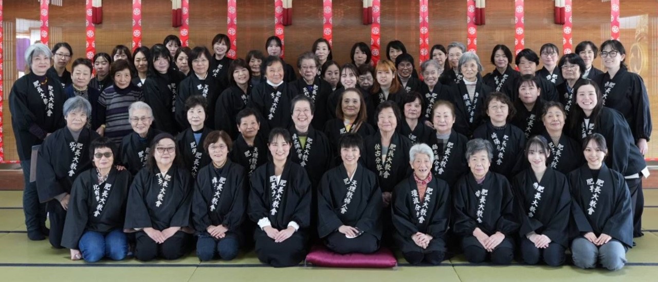 「教祖百四十年祭に向けて」と冠して開かれた同行事。当日は、おつとめまなびに続いて、「婦人会肥長支部総会」「青年会肥長分会総会」「少年会肥長団総会」をそれぞれ開催した。