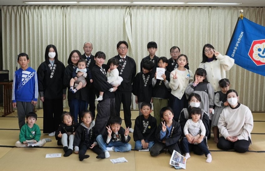 少年会肥長団(岩田晶平団長)では、中山善司・少年会長の告辞を岩田団長が代読して祝辞。新隊長の任命、来年中学校を卒業する少年会員の門出のお祝い、少年会員の「ちかい」の唱和と続き、最後は全員で『少年会の歌』を斉唱した。