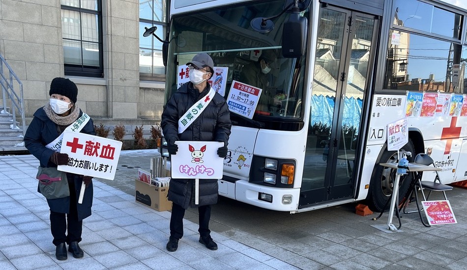 会津支部厚生部(間宮信雄部長)は1月10日、会津若松市の毎年恒例の初市「十日市」での献血活動に協力、10人が参加した。