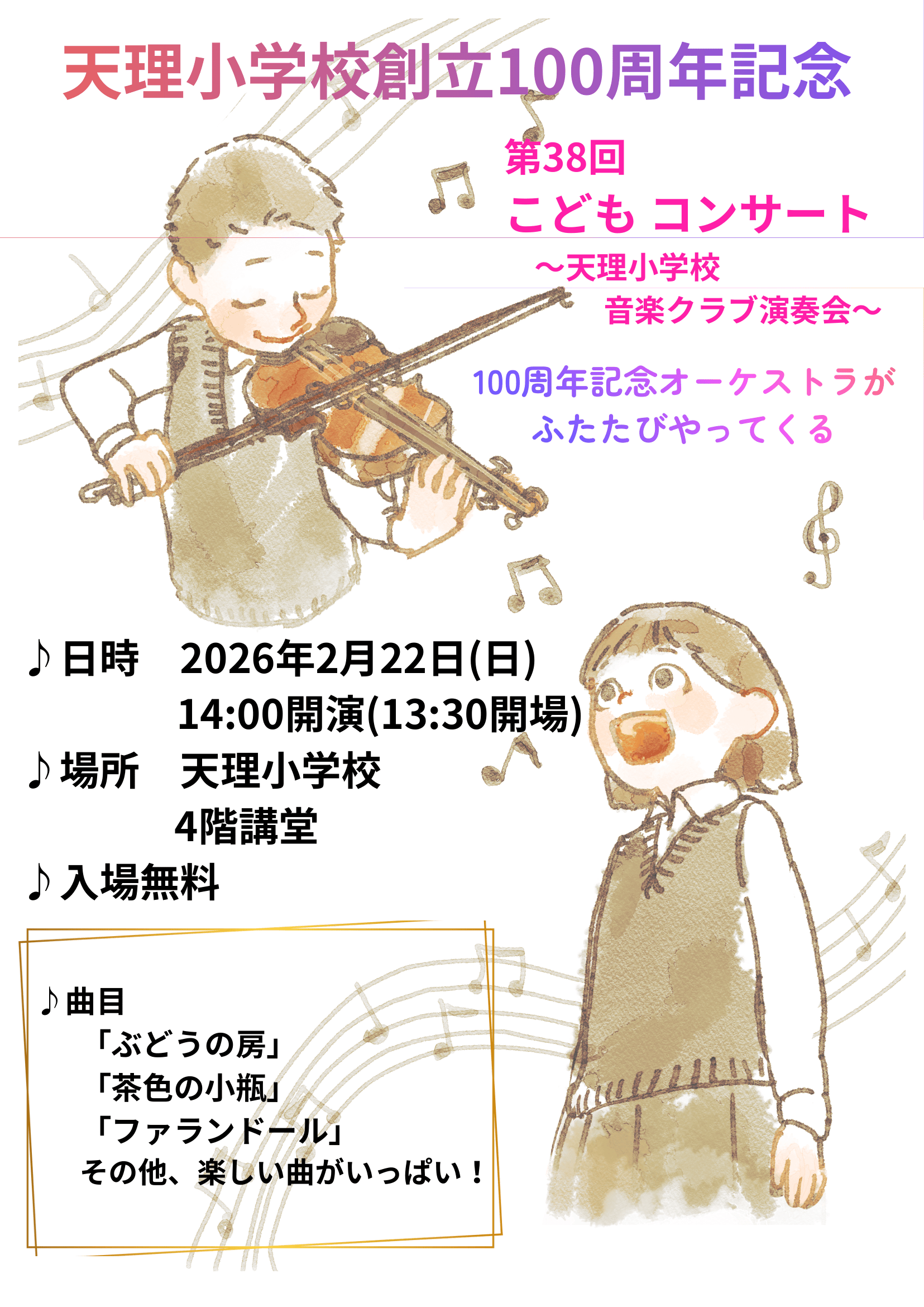 天理小学校 第38回こどもコンサート開催のお知らせ