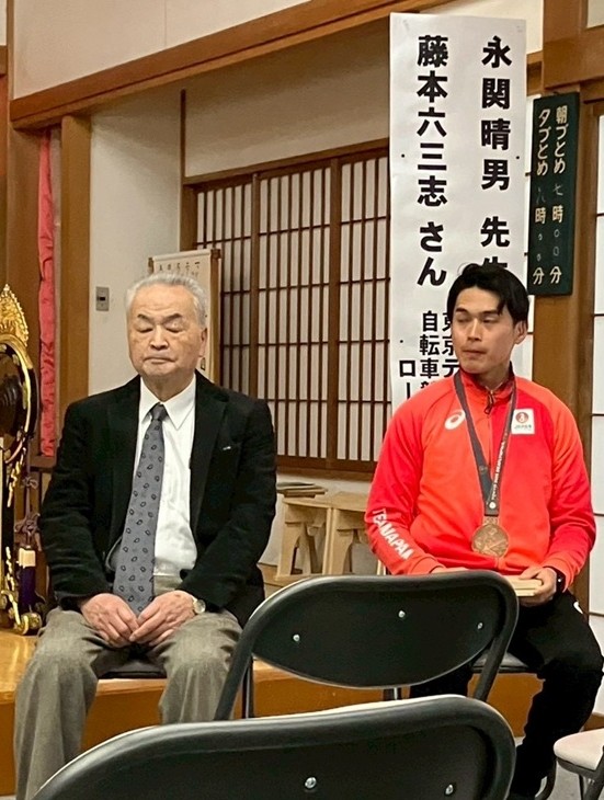 この後、「献血推進研修会」を開いたほか、昨年、秋の叙勲で瑞宝双光章を受章した永関晴男〈はれお〉・前教区長、ならびに「東京2025デフリンピック」の自転車競技で日本男子初の銅メダルを獲得した藤本六三志〈むさし〉氏(谷村町分教会ようぼく)のお祝いの会を行った。