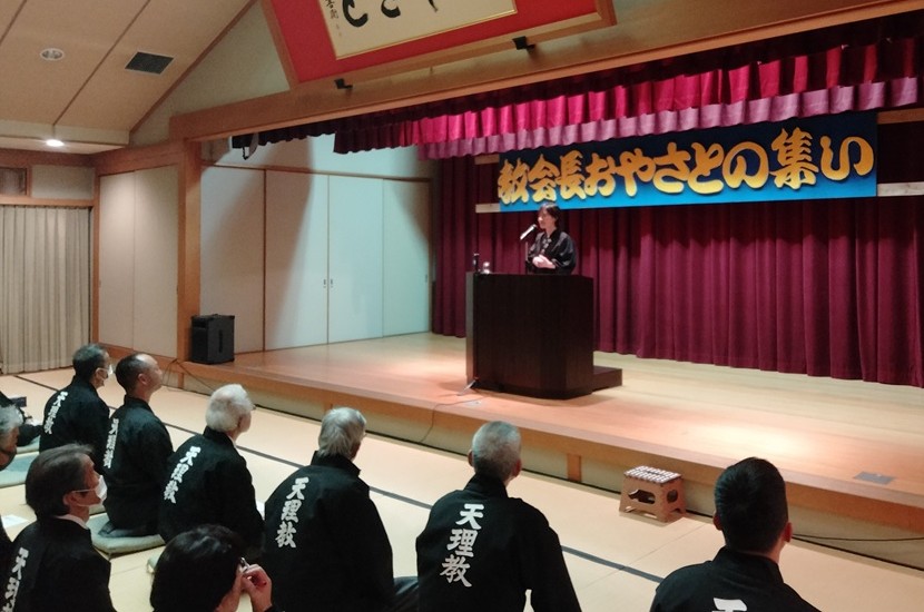 この後、岡﨑眞彦・大教会長があいさつ。今年2月のミラノ・コルティナ冬季五輪で金メダルを獲得した高所恐怖症のスキージャンパーの話題に寄せて、「諦めずに努力し続けることが私たちにも必要であり、その結果、得るものが必ずある」と述べた。そこから、「陽気ぐらしに向けて、たすけ一条になるため、 神一条の精神になるための”心のトレーニング”が必要であり、『教祖だったら』と常に考えることが欠かせない」と教示した。 さらに、次の塚に向かう指針として、まずは目標を定め、陽気ぐらしに向かって、人だすけのため、自分が幸せになるためにおつとめを勤めること、その理づくり・徳づくりとしてお道の教えを実践すること、心定めと志を持ち、諦めずに人材の育成と丹精につとめることを述べ、話を締めくくった。