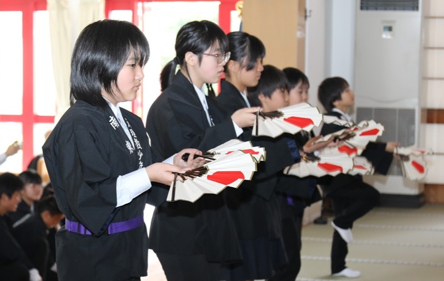 続く式典では、中山善司・少年会長の告辞、西 初晴・育成会長のあいさつの後、この春に中学校を卒業する少年会員に記念品を贈呈した。