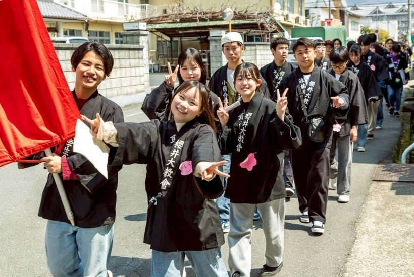 櫻井学生会(西本悠太郎委員長)は、3月28日に開催された「教祖140年祭学生おぢばがえり大会」に、52人が参加した。